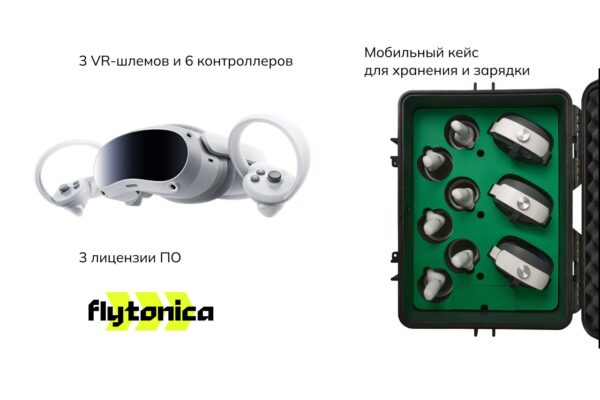 Программно-аппаратный комплекс (ПАК) Flytonica — симулятор для отработки навыков пилотирования, достоверно имитирующий управление квадрокоптерами с реалистичными полетными заданиями, локациями и трассами (6 локаций: учебный стадион, лесная местность, городская инфраструктура, береговая линия, завод, ангар; 6 сценариев: пролет по флажкам, пролет по кольцам, доставка груза, фотографирование, поиск объектов с помощью тепловизора, свободный полет; 2 квадрокоптера на выбор).