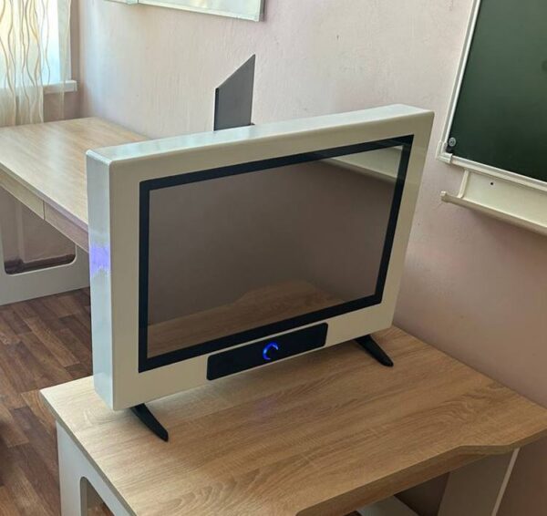 Наше зеркало уже включает в себя мощный встроенный компьютер и зеркальное сенсорное стекло, устраняя при этом необходимость в дополнительных устройствах и проводах. Именно в зеркальных свойствах экрана и кроется главная особенность данного оборудования, которая позволяет ребенку одновременно видеть и задание, и результаты своих усилий, что особенно эффективно в рамках артикуляционной гимнастики.